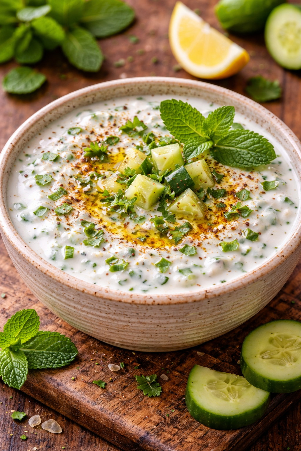 A simple bowl of yogurt can turn into the star of the table with just a handful of mint. This easy raita is cooling, zesty, and pairs beautifully with curry, roasted veggies, or even as a dip for crunchy breadsticks or leftover flatbread.