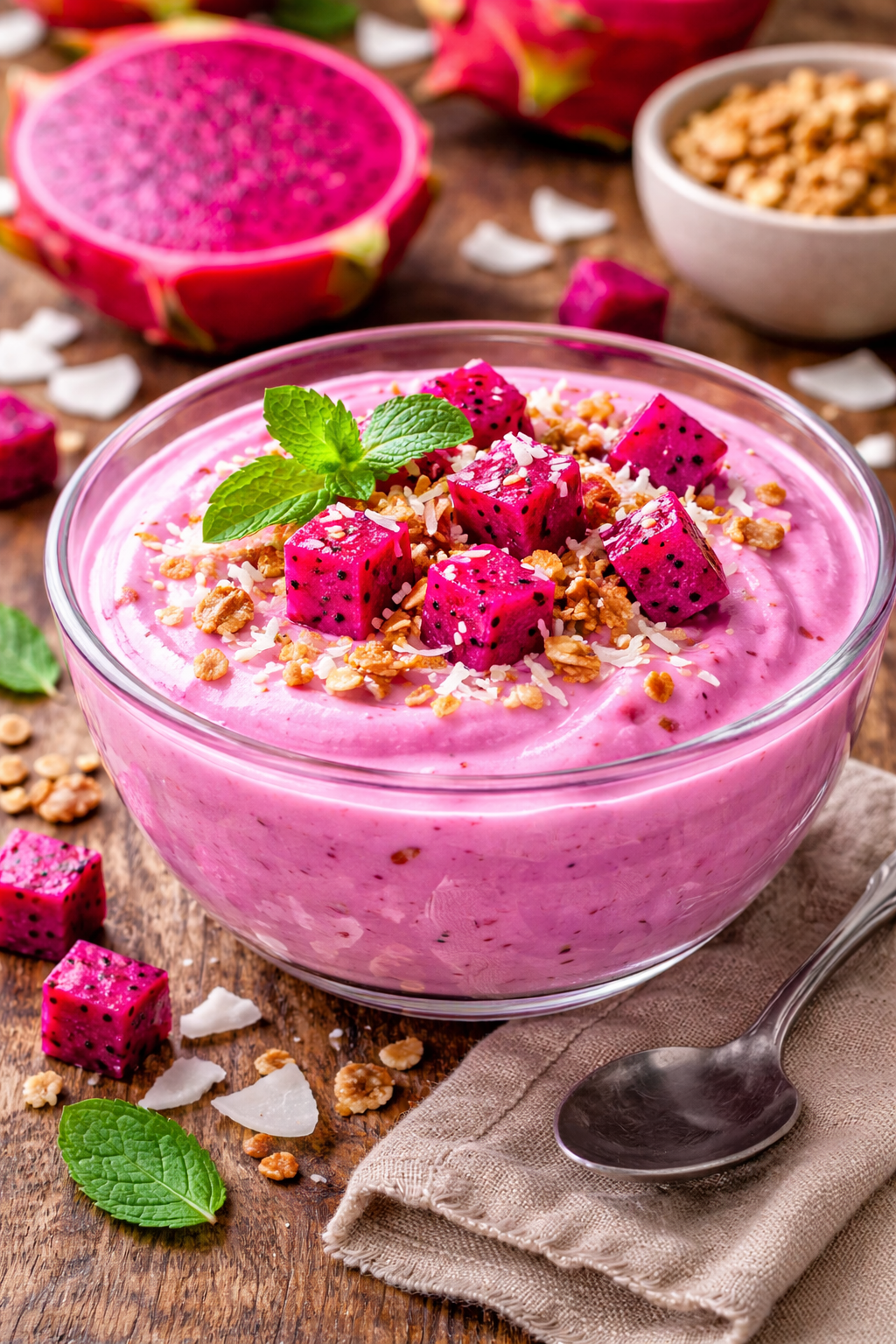 Dragonfruit is a joy not only for its looks but also for its health benefits. Rich in antioxidants, fibre, vitamin C, magnesium and even prebiotics, it’s light on calories but big on goodness. It may not always be the strongest tasting fruit, but what it gives in return is its stunning colour — that vibrant pink flesh that transforms even the simplest dish into something fun and uplifting.