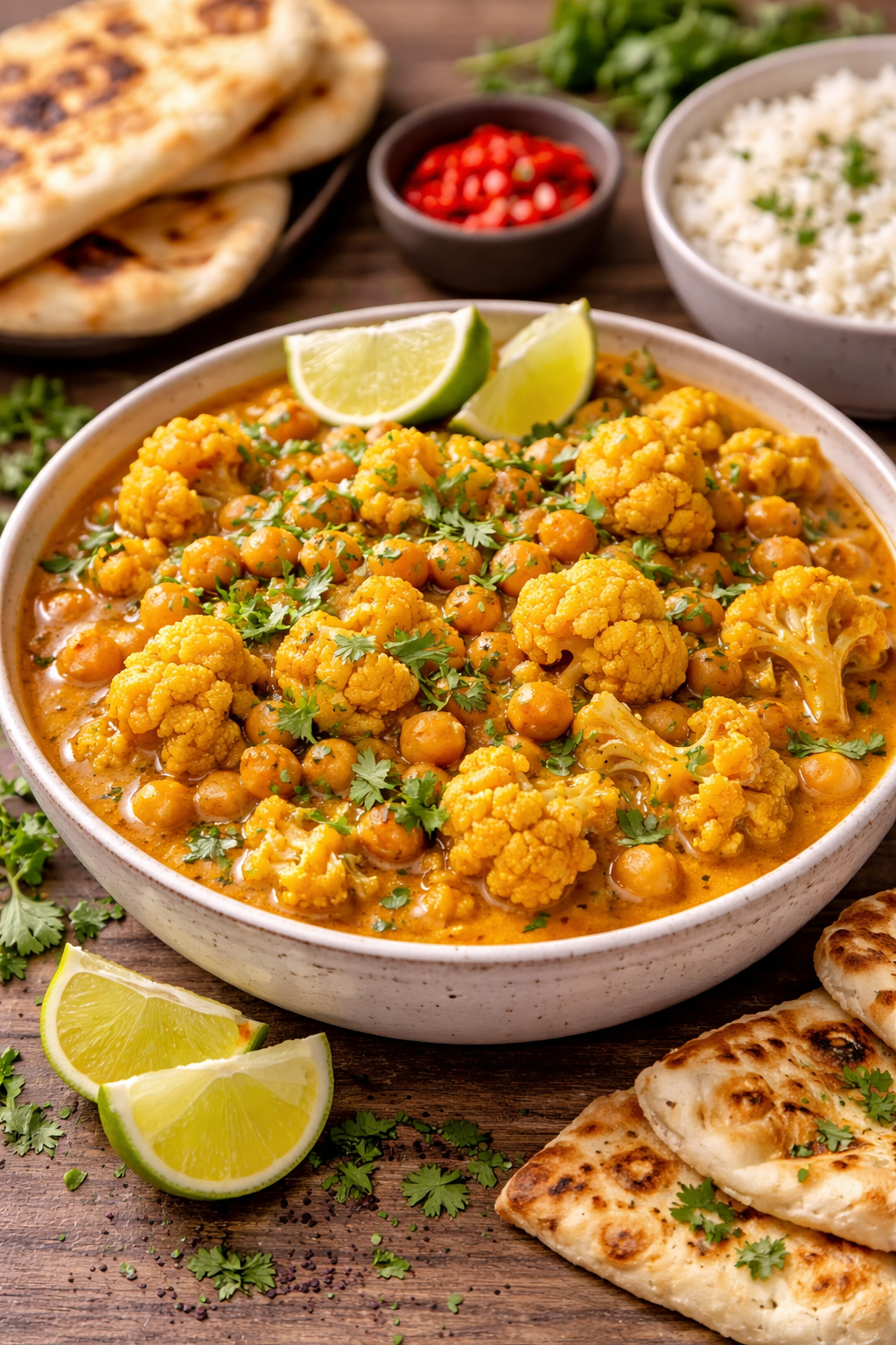 Stir in coconut milk (or yogurt) and let it bubble gently for 5 minutes, until the chicken is tender and the sauce rich. If cauliflower, add it now.