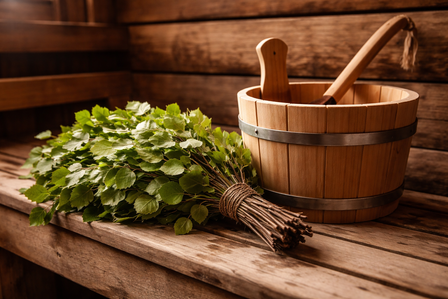 Alongside löyly comes a ritual that feels like pure forest medicine: the birch whisk. Known as vihta in western Finland and vasta in the east, it’s a bundle of birch twigs, usually soaked in water, used to gently tap or brush the skin during the sauna. To an outsider it can look unusual, but it is deeply comforting. The movement wakes up circulation, the leaves release their clean green scent, and the whole body feels more alive. It is not about pain or punishment. It is about renewal.